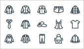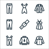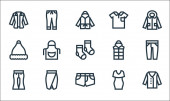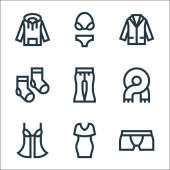ikony linii mody. zestaw liniowy. wysokiej jakości zestaw linii wektorowych, takich jak czapka, buty sportowe, strój kąpielowy, sweter, spódnica, but, sukienka, kolczyki