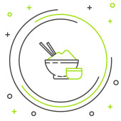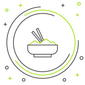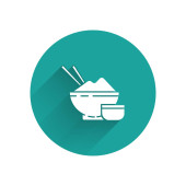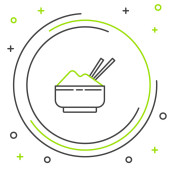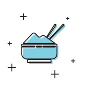 Linia Ryż w misce z ikoną pałeczki izolowane na białym tle. Tradycyjne azjatyckie jedzenie. Kolorowy koncept. Wektor.