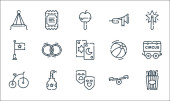 Zdjęcie "ikony linii cyrkowej. zestaw liniowy. wysokiej jakości zestaw linii wektorowych, takich jak bęben, girlandy, karta tarota, plakat, flaga, napój bezalkoholowy, popcorn, karmelizowane jabłko, magiczny kapelusz" może być wykorzystywane do celów osobistych i komercyjnych zgodnie z warunkami zakupionej licencji Royalty-free. Obraz jest dostępny do pobrania w jakości wysokiej rozdzielczości do 5760x3840.