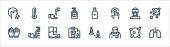 ikony linii koronawirusów. zestaw liniowy. wysokiej jakości zestaw linii wektorowych, takich jak butelka tabletek, DNA, termometr, świnia, informacje, głowa, wirus, zegar