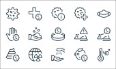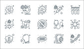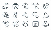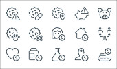ikony linii koronawirusów. zestaw liniowy. zestaw linii wektorowych jakości, takich jak ostrzeżenie, maska twarzy, laboratorium, lokalizacja, cel, tarcza antywirusowa, wirus, dżuma, pigułka