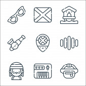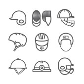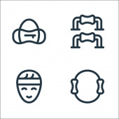 ikony hokejowe. zestaw liniowy. wysokiej jakości zestaw linii wektorowych, takich jak hokej, tablica wyników, ochraniacz ust, torba, kask, kije hokejowe, butelka wody, ubrania