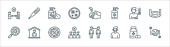 ikony linii koronawirusów. zestaw liniowy. wysokiej jakości zestaw linii wektorowych, takich jak brak uścisku dłoni, szkło powiększające, mycie rąk, wirus, środek dezynfekujący, unikać tłumów, nie ma wirusa, termometr