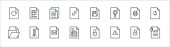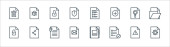 pliku i dokumentu zarysu ikon linii. zestaw liniowy. zestaw linii wektorowych jakości, takich jak załącznik, błąd, zapisać, mail, ochrona, kopiowanie, dodawanie, wyszukiwanie