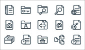 pliku i dokumentu zarysu ikon linii. zestaw liniowy. zestaw linii wektorowych jakości, takich jak zamek, kontakty, zapisać, faktura, usunąć, załącznik, folder, błąd, wyszukiwania