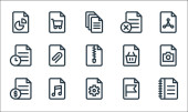 pliku i dokumentu zarysu ikon linii. zestaw liniowy. zestaw linii wektorowych jakości, takich jak błąd, raport, załącznik, odblokowanie, kliknięcie, kontakty, kopiowanie, pobieranie, zapisywanie