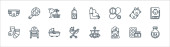 ikony wyścigów samochodowych. zestaw liniowy. wysokiej jakości zestaw linii wektorowych, takich jak zbiornik tlenu, podium, filtr powietrza, paliwo, trofeum, flaga mety, test, szampan