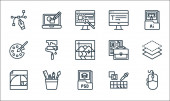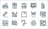 projektowanie ikon linii myślenia. zestaw liniowy. wysokiej jakości zestaw linii wektorowych, takich jak książka, schowek, ołówek, schowek, laptop, puzzle, długopis, strona internetowa, użytkownik