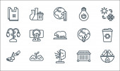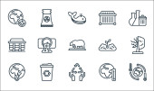 ikony linii zmian klimatycznych. zestaw liniowy. wysokiej jakości zestaw linii wektorowych, takich jak koronawirus, topór, pogoda, niedźwiedź polarny, bez plastikowych toreb, co, burza, fabryka, elektrownia jądrowa