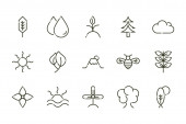 ikony linii natury. zestaw liniowy. zestaw linii wektorowych jakości, takich jak ekologia, woda, gałąź, zima, oliwka, pole, jagody, kamienie, drzewo