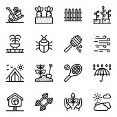 ikony wiosennej linii. zestaw liniowy. wysokiej jakości zestaw linii wektorowych, takich jak zachmurzenie, kwiaty, uli, widelec, błąd, wiosenna cebula, ważka, pszczoła, deszczowy dzień