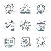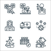 ikony linii koronawirusów. zestaw liniowy. wysokiej jakości zestaw linii wektorowych, takich jak schowek, koronawirus, badania próbek, maska, koronawirus, sars, szpital, badanie krwi