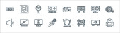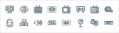 ikony telewizji. zestaw liniowy. wysokiej jakości zestaw linii wektorowych, takich jak port hdmi, ekran, k, rozbity, d okulary, antena satelitarna, d telewizor, wspornik