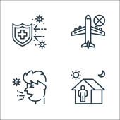 ikony linii koronawirusów. zestaw liniowy. wysokiej jakości zestaw linii wektorowych, takich jak alarm, szczepionka, zagrożenie, karetka, kaszel, zachować odległość, krwinki, rękawiczki