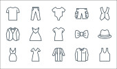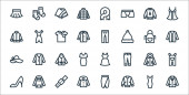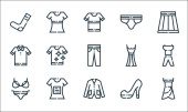 ikony linii ubrań. zestaw liniowy. wysokiej jakości zestaw linii wektorowych, takich jak garnitur, pamela kapelusz, sukienka, spodnie, szalik, spódnica, majtki, spodnie, spódnica