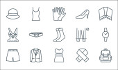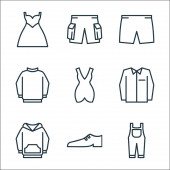 ikony linii ubrań. zestaw liniowy. wysokiej jakości zestaw linii wektorowych, takich jak fartuch, kurtka, gorset, koszulka polo, sukienka, kurtka, bluza z kapturem, krótki