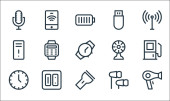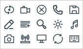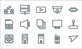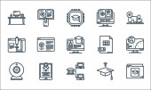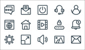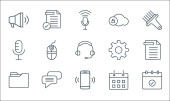 ikony linii interfejsu użytkownika. zestaw liniowy. wysokiej jakości zestaw linii wektorowych, takich jak usuwanie, komputer, html, karta identyfikacyjna, przypomnienie, słuchawki, dokument, ostrość, blokada chmury