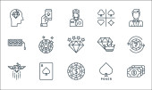 ikony linii kasyna. zestaw liniowy. zestaw linii wektorowych jakości, takich jak karty pokerowe, koniczyna, żeton kasynowy, kasyno, gra karciana, klient, gra karciana, gra karciana, chip