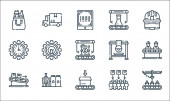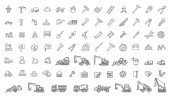 ikony linii konstrukcji. zestaw liniowy. wysokiej jakości zestaw linii wektorowych, takich jak buldożer, wiertarka, rolka, ciągnik, linijka, koła, kamizelka ratunkowa, rolka, klucz