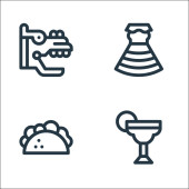 ikony linii cinco de mayo. zestaw liniowy. wysokiej jakości zestaw linii wektorowych, takich jak sól i pieprz, piwo, świeca, kwiat, tabasco, meksykański kapelusz, tequila, flet