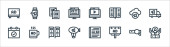ikony rock 'n' rolla. zestaw liniowy. wysokiej jakości zestaw linii wektorowych, takich jak scena, cd, mp player, zestaw perkusyjny, mikrofon, boombox, koszulka, disco ball