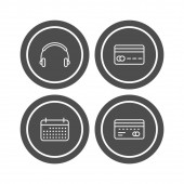 ikony rock 'n' rolla. zestaw liniowy. wysokiej jakości zestaw linii wektorowych, takich jak mikrofon, mp player, ustawienia