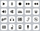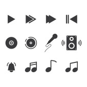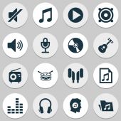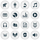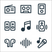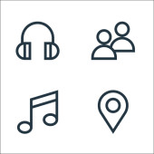ikony interfejsu odtwarzacza muzyki. zestaw liniowy. wysokiej jakości zestaw linii wektorowych, takich jak odtwarzacz muzyczny, mikrofon, słuchawki, książka muzyczna, playlista, playlista, głośnik