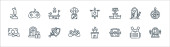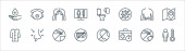 ikony pustyni. zestaw liniowy. wysokiej jakości zestaw linii wektorowych, takich jak gorący, kanion, lampa olejowa, góry, skorpion, olej derrick, pick