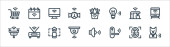 elektronarzędzia i ikony linii. zestaw liniowy. wysokiej jakości zestaw linii wektorowych, takich jak elektryk, włącznik, kabel miedziany, niebezpieczeństwo elektryczne, woltomierz, młot, ustawienia, bateria