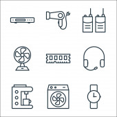 elektronarzędzia i ikony linii. zestaw liniowy. wysokiej jakości zestaw linii wektorowych, takich jak lampa biurkowa, żarówka, rękawica