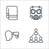 Zdjęcie "płaskie ikony ratownicze i ochronne. zestaw liniowy. wysokiej jakości zestaw linii wektorowych, takich jak maska spawalnicza, maska gazowa, blokada drogi, fartuch laboratoryjny, kamizelka, ostrzeżenie, kask, przycisk przeciwpożarowy" może być wykorzystywane do celów osobistych i komercyjnych zgodnie z warunkami zakupionej licencji Royalty-free. Obraz jest dostępny do pobrania w jakości wysokiej rozdzielczości do 5760x3840.