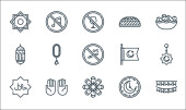 Zdjęcie "ikony linii Ramadan. zestaw liniowy. wysokiej jakości zestaw linii wektorowych, takich jak półksiężyc, post, pocieranie el hizb, kalendarz, kaaba, meczet, muzułmanie, różaniec, dywan" może być wykorzystywane do celów osobistych i komercyjnych zgodnie z warunkami zakupionej licencji Royalty-free. Obraz jest dostępny do pobrania w jakości wysokiej rozdzielczości do 5760x3840.