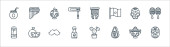 ikony linii rolnej. zestaw liniowy. wysokiej jakości zestaw linii wektorowych, takich jak łopata, jaja, siew, ciągnik, kurczak, strach na wróble, kosa, butelka mleka