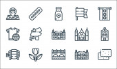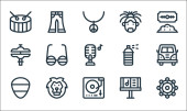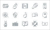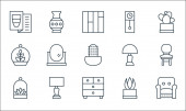 ikony linii wnętrz. zestaw liniowy. wysokiej jakości zestaw linii wektorowych, takich jak szafa, komoda, mata, szafka, szafa, wazon, podłoga, lampa, krzesło