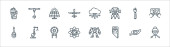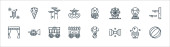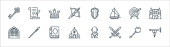 ikony linii czasów średniowiecza. zestaw liniowy. wysokiej jakości wektor linii zestaw, takich jak krzyżowiec, skrzynia skarbów, smok, nogi kurczaka, królowa, sztandar, róża, topór