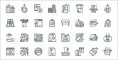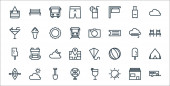 ikony linii urody. zestaw liniowy. wysokiej jakości zestaw linii wektorowych, takich jak szczotka do włosów, make up box, krem do twarzy, lustro, tusz do rzęs, krem do opalania, lakier do paznokci, krem do twarzy, szampon
