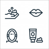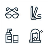 ikony linii urody. zestaw liniowy. wysokiej jakości zestaw linii wektorowych, takich jak suszarka do włosów, cienie do powiek, piękno, rzęsy, szminka, tkanka, usta
