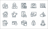 ikony linii profilaktyki koronawirusów. zestaw liniowy. wysokiej jakości zestaw linii wektorowych, takich jak kaszel, maska medyczna, suplement, środek dezynfekujący, mydło do rąk, społeczne, kosz na śmieci, czyste