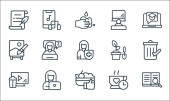 Zdjęcie "ikony linii profilaktyki koronawirusów. zestaw liniowy. wysokiej jakości zestaw linii wektorowych, takich jak kaszel, maska medyczna, suplement, środek dezynfekujący, mydło do rąk, społeczne, kosz na śmieci, czyste" może być wykorzystywane do celów osobistych i komercyjnych zgodnie z warunkami zakupionej licencji Royalty-free. Obraz jest dostępny do pobrania w jakości wysokiej rozdzielczości do 5760x3840.