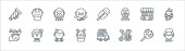 ikony linii cyrkowej. zestaw liniowy. wysokiej jakości zestaw linii wektorowych, takich jak lew, foka, klaun, brodaty kobieta, pożeracz ognia człowiek, lody, akrobata, popcorn