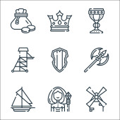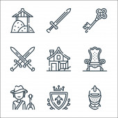 ikony angielskich linii. zestaw liniowy. wysokiej jakości zestaw linii wektorowych, takich jak deszczowe, miecz, kapelusz fedora, wojownik, szachy, rugby