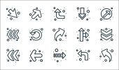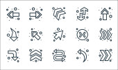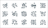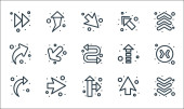 ikony linii strzałek. zestaw liniowy. jakość wektor linii zestaw, takich jak odświeżenie, krzywa strzałka, pobierz, strzałka w prawo, strzałka w prawo, w dół