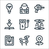 ikony marketingu cyfrowego. zestaw liniowy. wysokiej jakości zestaw linii wektorowych, takich jak link, kotwica, rakieta, dźwięk, widok, laptop, strongbox, e-mail, pomysł