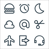 ikony linii interfejsu użytkownika. zestaw liniowy. jakość wektor linii zestaw, takich jak kalendarz, śmieci, tryb nocny, spadek, hamburger, skontaktuj się z nami, nie lubię