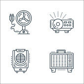 ikony linii urządzeń elektronicznych. zestaw liniowy. wysokiej jakości zestaw linii wektorowych, takich jak walkie talkie, projektor, odtwarzacz DVD