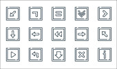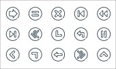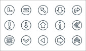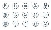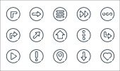 ikony linii strzałek. zestaw liniowy. zestaw linii wektora jakości, takich jak plecy, matematyka, pomoc, lista kontrolna, poprzedni, skręcić w lewo, w lewo, skręcić w prawo, w prawo