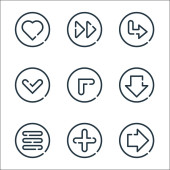 ikony linii strzałek. zestaw liniowy. wysokiej jakości wektor linii zestaw, takich jak pauza, dół, lewo, dół w lewo, miłość, o, gwiazda, strzałka w górę
