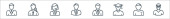 ikony zawodów. zestaw liniowy. zestaw linii wektorowych jakości, takich jak biznesmen, prawnik, menedżer, naukowiec, call agent, niania, biznesmen
