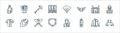 Zdjęcie "Ikony sławy. zestaw liniowy. wysokiej jakości zestaw linii wektorowych, takich jak latarka, dywan, samoloty, reflektory, trofeum, flaga, czat wideo, trofeum" może być wykorzystywane do celów osobistych i komercyjnych zgodnie z warunkami zakupionej licencji Royalty-free. Obraz jest dostępny do pobrania w jakości wysokiej rozdzielczości do 5760x3840.