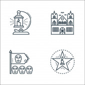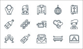 Ikony sławy. zestaw liniowy. wysokiej jakości wektor linii zestaw, takich jak krzesło reżysera, Hall of Fame, dywan, mężczyzna, autograf, billboard, bukiet kwiatów, gitara, kobieta